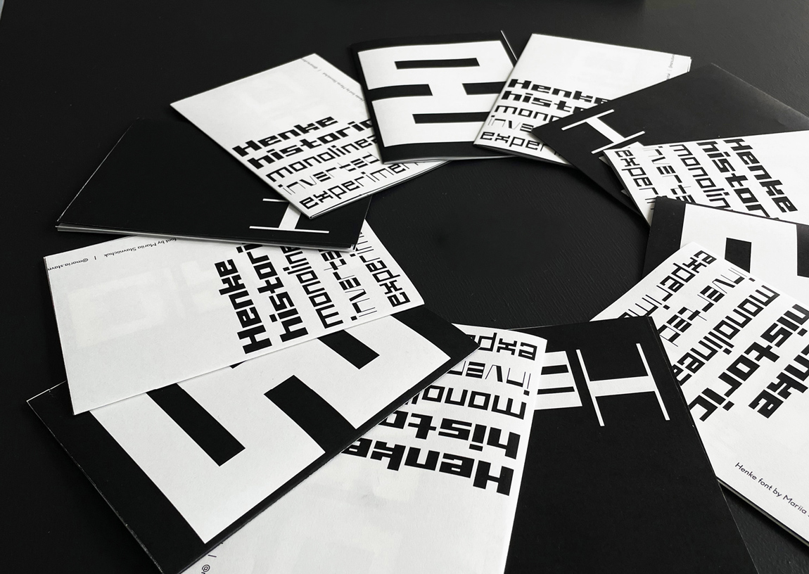Font Henke je akcidenční displayové písmo, které má geometrický a brutální charakter. Obsahuje 4 řezy: historický, monolineární, inverzní a experimentální.